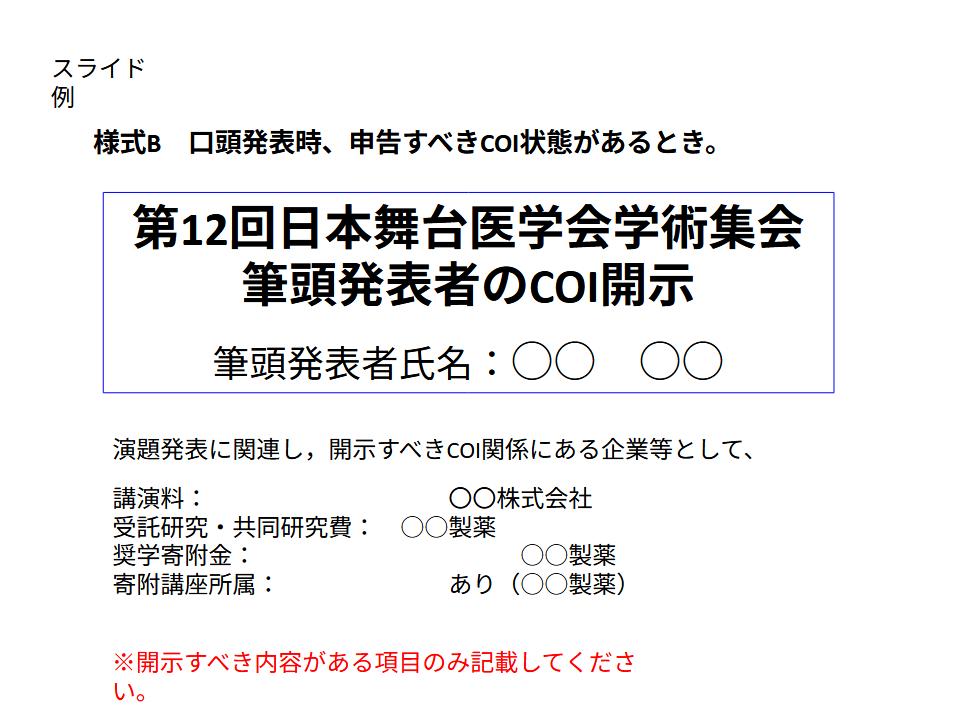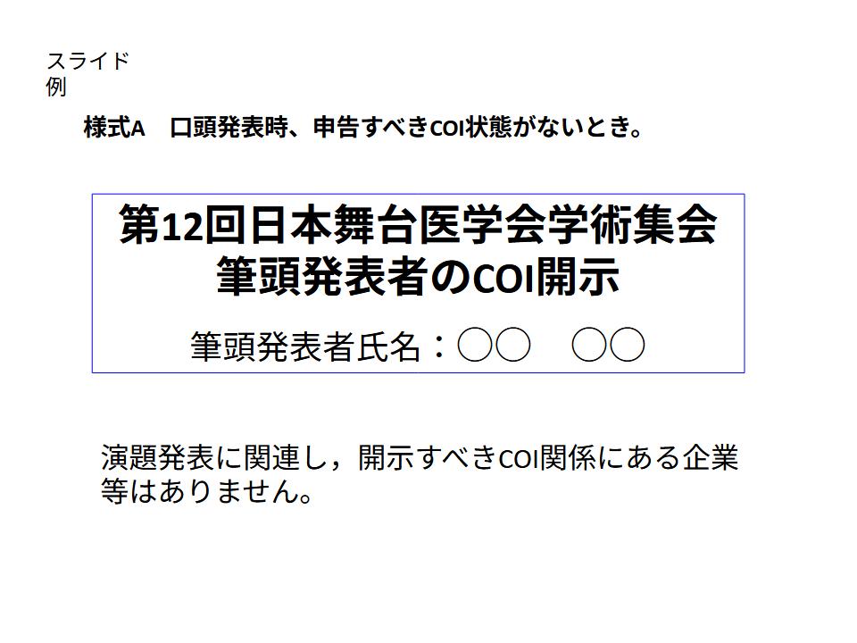 COI(利益相反)につきましては、以下のテンプレート(pptx)を参考に発表スライドの作成をお願いいたします。